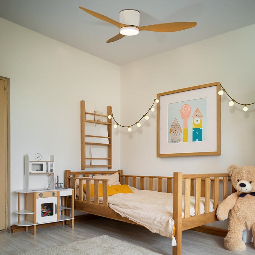 מאוורר צמוד תקרה 48" ERA בצבע לבן/עץ טבעי כולל שלט ותאורה, הפעלה באפליקציה