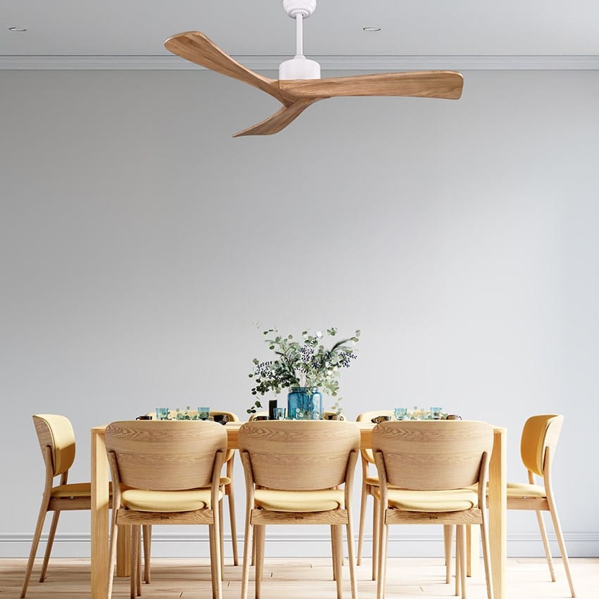 מאוורר תקרה 52" OXFORD כנפיים מעץ אמיתי טבעי לבן/עץ כולל שלט, מנוע DC