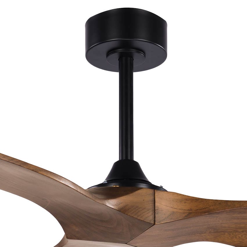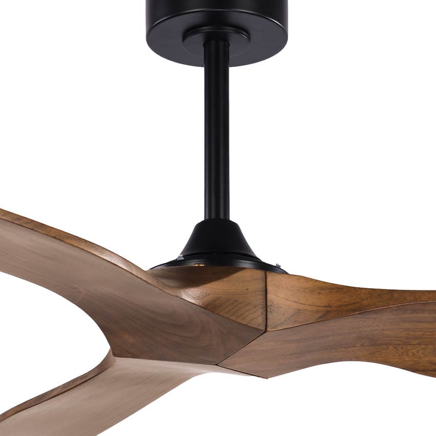 מאוורר תקרה 52" TRINITY כנפיים מעץ אמיתי טבעי בצבע שחור/עץ כולל שלט, מנוע DC