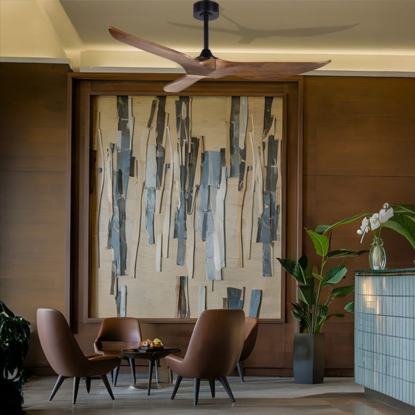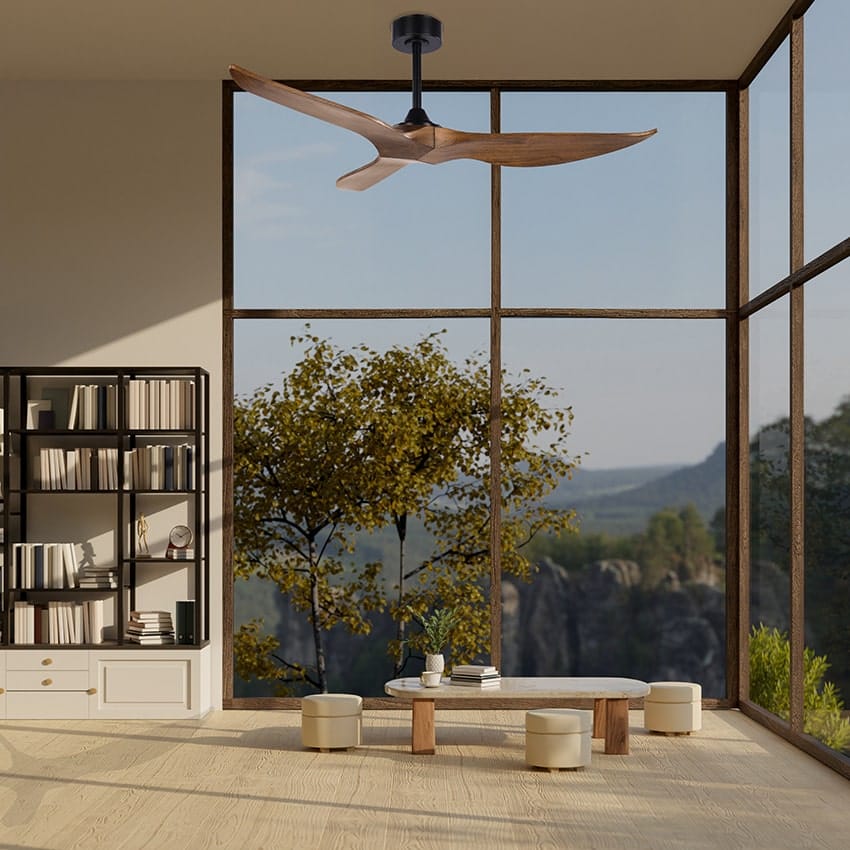 מאוורר תקרה דקורטיבי 52" דגם TRINITY בצבע שחור עם 3 כנפיים מעץ אמיתי טבעי בצבע כהה, מנוע DC מתקדם, עוצמתי ושקט, 6 מהירויות, עיצוב ייחודי ואיכות ללא פשרות. אפשרות כיבוי והפעלה ושליטה במהירות הסיבובים ע"י שלט ייעודי. כולל טיימר עד 8 שעות NORTHER