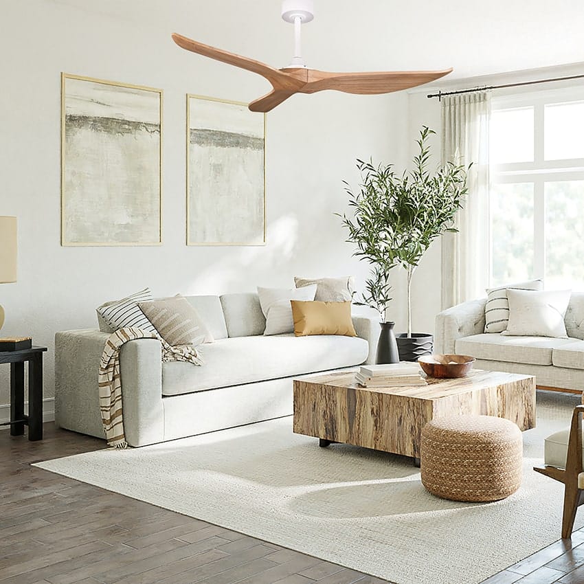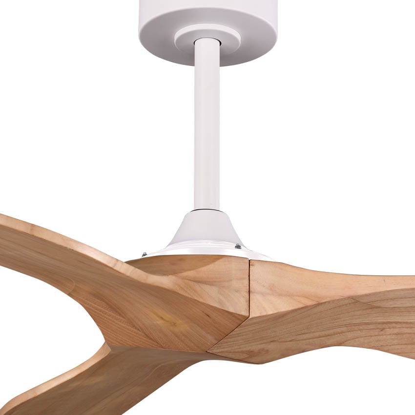 מאוורר תקרה 52" TRINITY כנפיים מעץ אמיתי טבעי בצבע לבן/עץ כולל שלט, מנוע DC