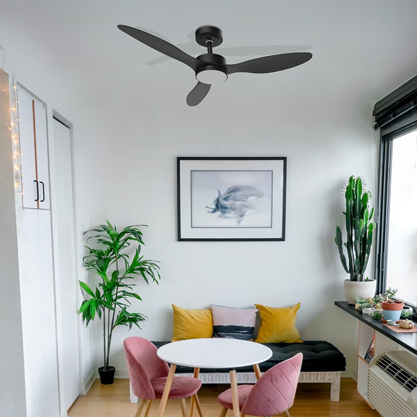 מאוורר תקרה 42" VERMONT בצבע שחור כולל שלט ותאורה, מנוע DC