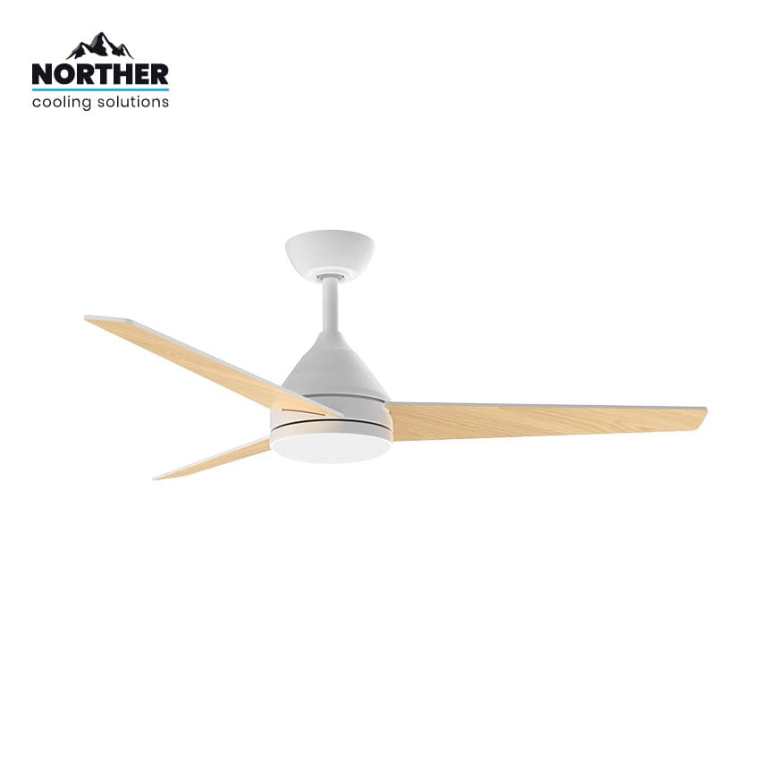 מאוורר תקרה מעוצב דגם YOUNG (יאנג) מבית Norther מסדרת פרימיום ליין עם 3 להבים בקוטר 48". מאוורר זה מגיע בגימור מנוע בצבע לבן ולהבים בצבע עץ טבעי או לבן, ניתן לבחור את הצבע במעמד ההתקנה. אידאלי לחדרי שינה וכולל מנוע DC שקט וחסכוני. למאוורר יש זיכרון אוורור לשעון טיימר והוא מותאם להפעלה על ידי שעון שבת כך שלאחר כיבויי והדלקה, ישוב המאוורר לפעולתו האחרונה הן במצב אוורור והן במצב תאורה. אידאלי לשומרי שבת.