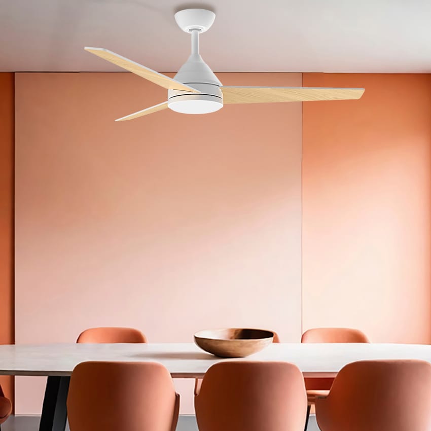 מאוורר תקרה 48" YOUNG בצבע לבן/עץ טבעי כולל שלט ותאורה, מנוע DC