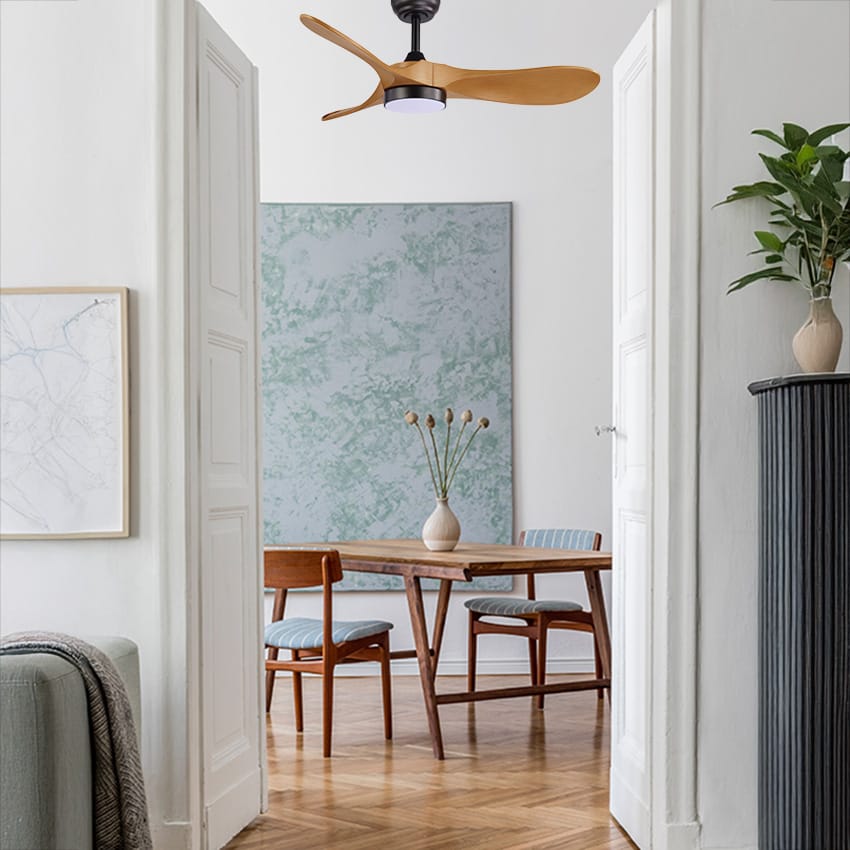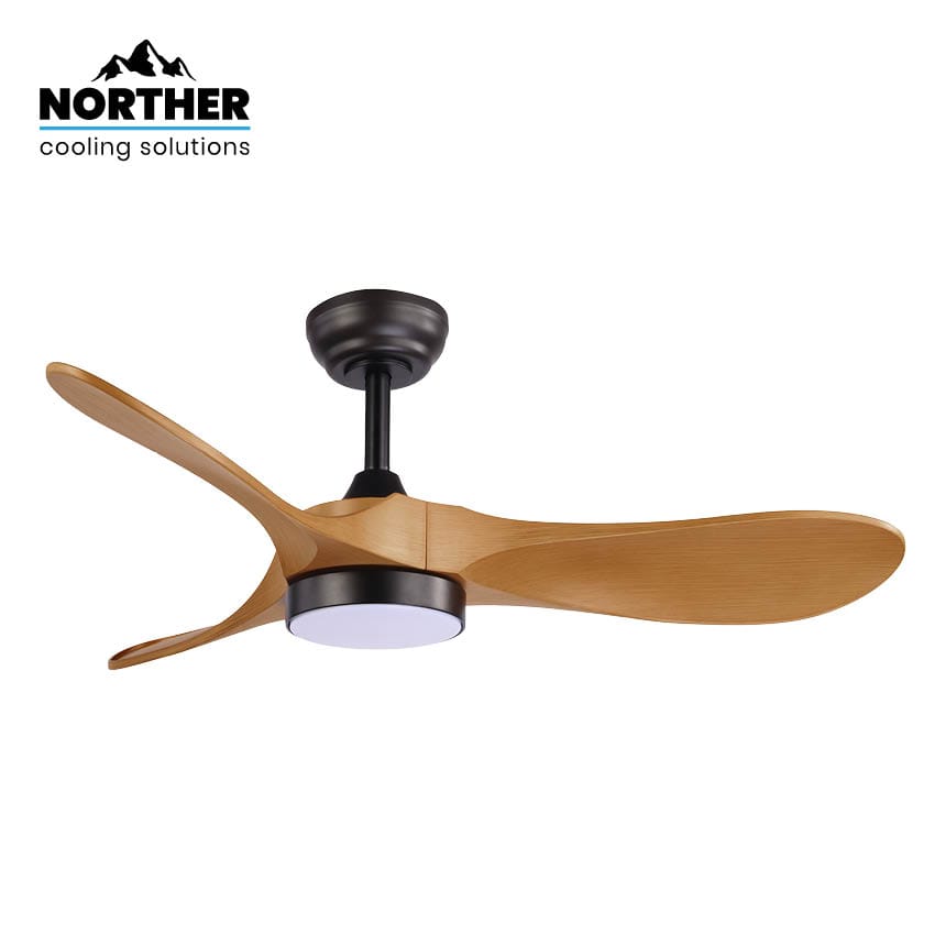מאוורר תקרה 42" YORK בצבע שחור/עץ טיק כולל שלט ותאורה, מנוע DC