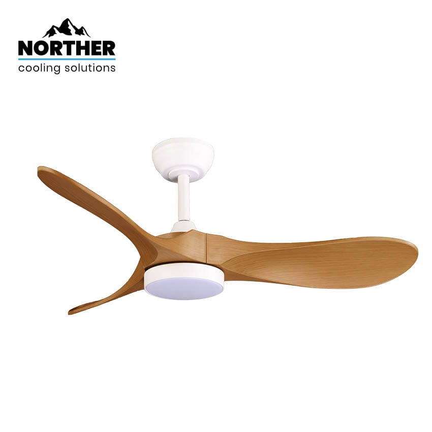 מאוורר תקרה דקורטיבי 42" דגם YORK בצבע לבן עם 3 כנפיים בצבע עץ, כולל גוף תאורה 24W עם פלטת LED בגוון אור משתנה באמצעות שלט, מנוע DC מתקדם, עוצמתי ושקט, 6 מהירויות, עיצוב ייחודי ואיכות ללא פשרות. אפשרות כיבוי והפעלה, שליטה במהירות הסיבובים, ובגוון האור עי" שלט ייעודי. כולל טיימר עד 8 שעות NORTHER