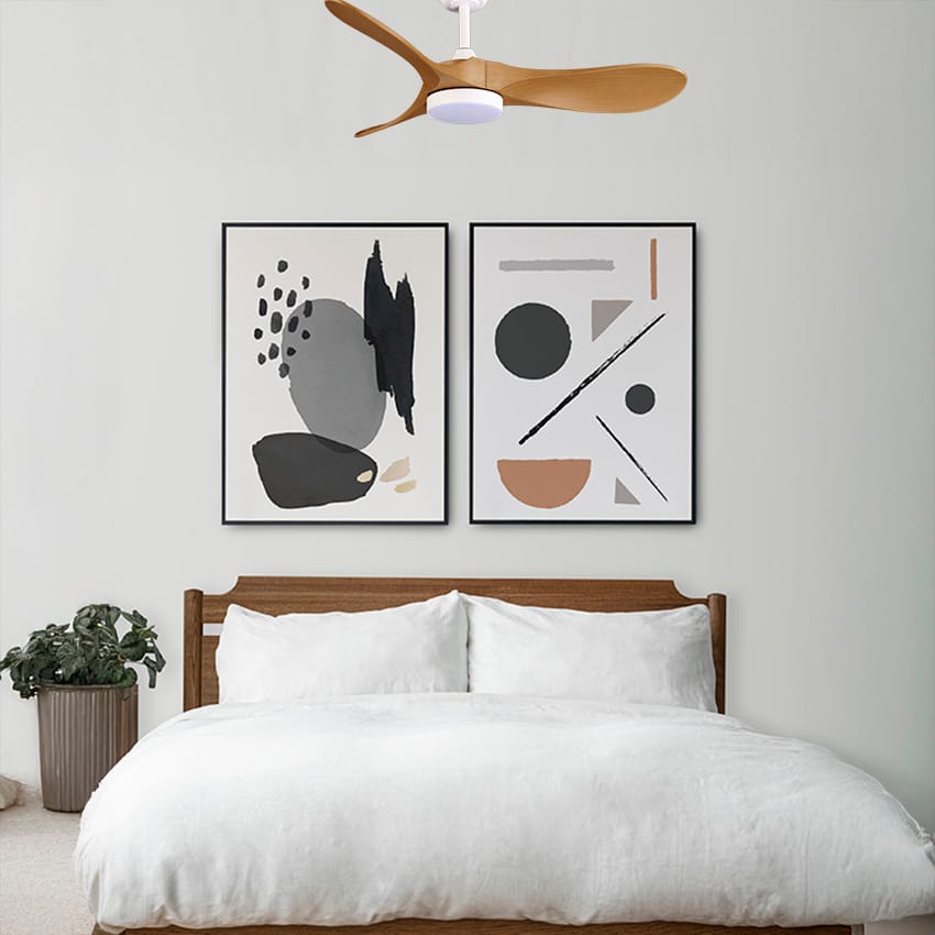 מאוורר תקרה 42" YORK בצבע לבן/עץ טיק כולל שלט ותאורה, מנוע DC